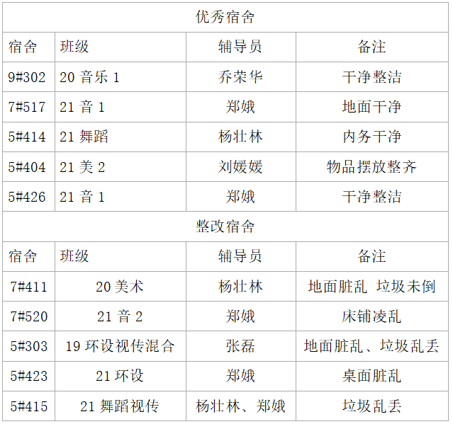 艺术学院第八周查宿汇总